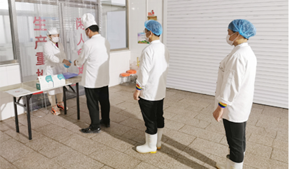 目前已對人員進行復工后演練,每早每晚對員工進行溫度測量 如發現有發熱咳嗽等疑似癥狀立刻報告公司防疫辦公室,無查明原因不得上崗。所有操作人員進入操作間一定勤洗手,勤消毒,勤換口罩和手套等其它防護用具。